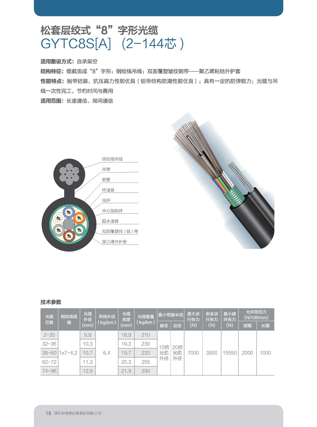 松套層絞式“8”字型光纜GYTC8S[A](2-144芯)