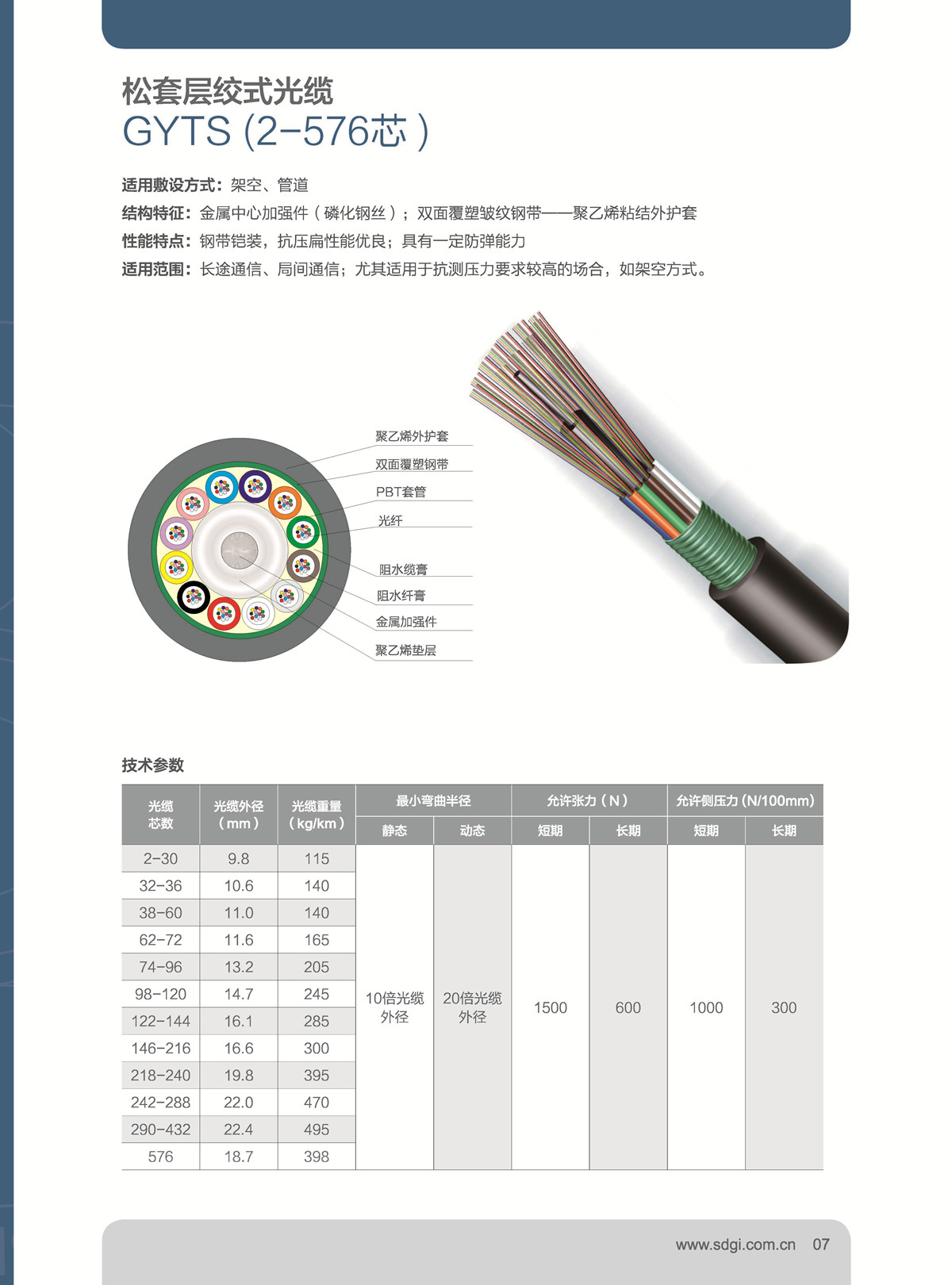 松套層絞式光纜GYTS(2-576芯)